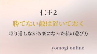 仁王2でしんどくなったとき、私は勝てない敵をいったん置いて、別のミッションを回ったり、木霊ちゃんを探したりしながら進めてきました。寄り道して戻ると不思議と楽になる。そんな私なりの遊び方をまとめた記事です。